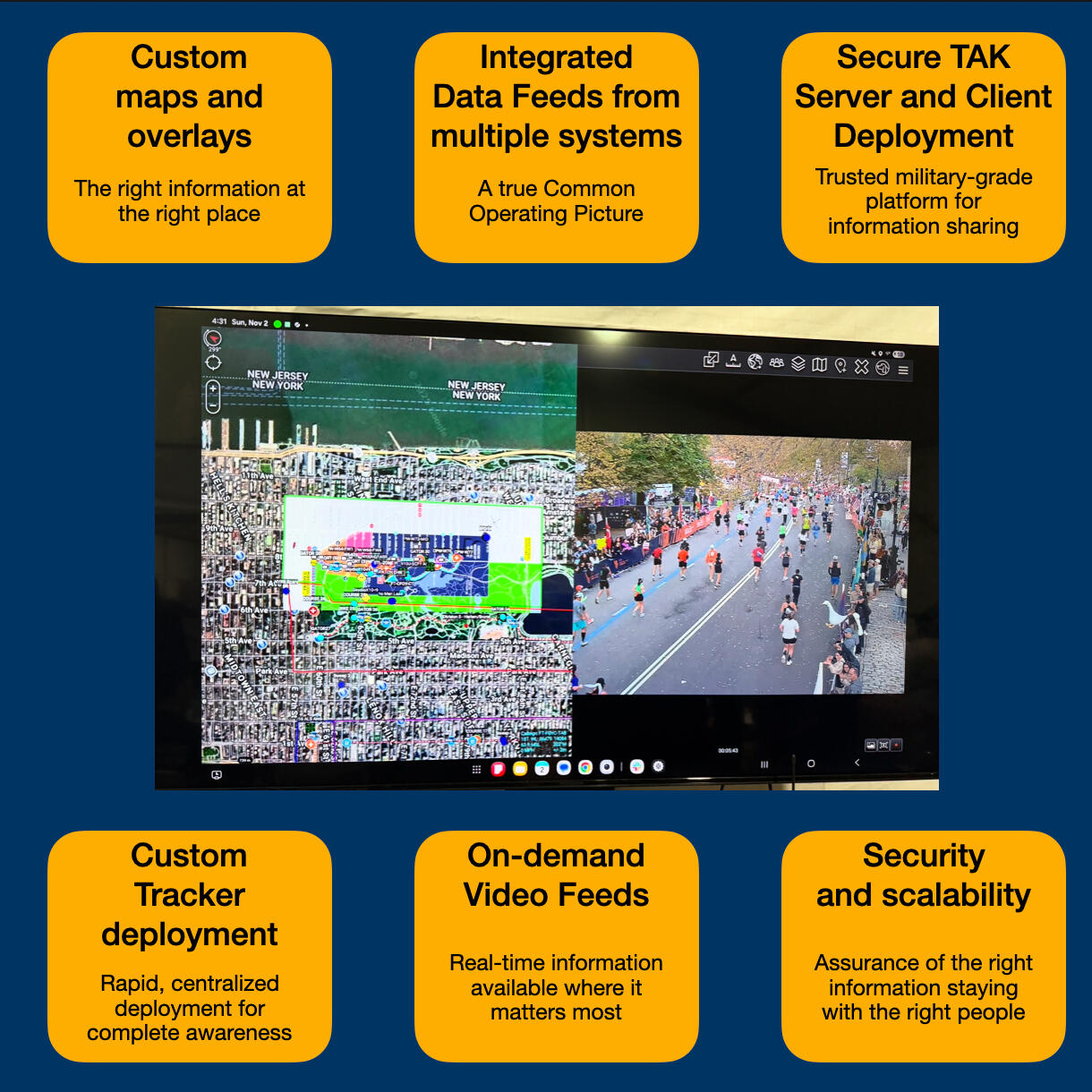 With over 3,000 medical professionals and hundreds of response vehicles, knowing where personnel are at - along with the calls for service and how to get to them - is critical. Flight Tactics worked with CrowdRX to provide a solution combining custom standalone LTE trackers, TAK Servers, public camera feeds, CCTV video feeds, drone detection and more into a single map providing key information at a moment's notice to ensure an amazing - and more importantly safe - race.